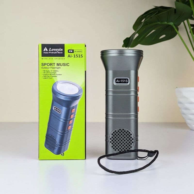 Ai-151s Wireless Speaker Outdoor FlashlightProduct Details:Playtime:2-5 HoursNet Weight: 170gPhysical Dimension: 152X60X48mmTransmission Distance: 10mFM Radio 87-108 MHz1W LED FlashlightOutdoor Wireless SpeakerUSB/TF Port