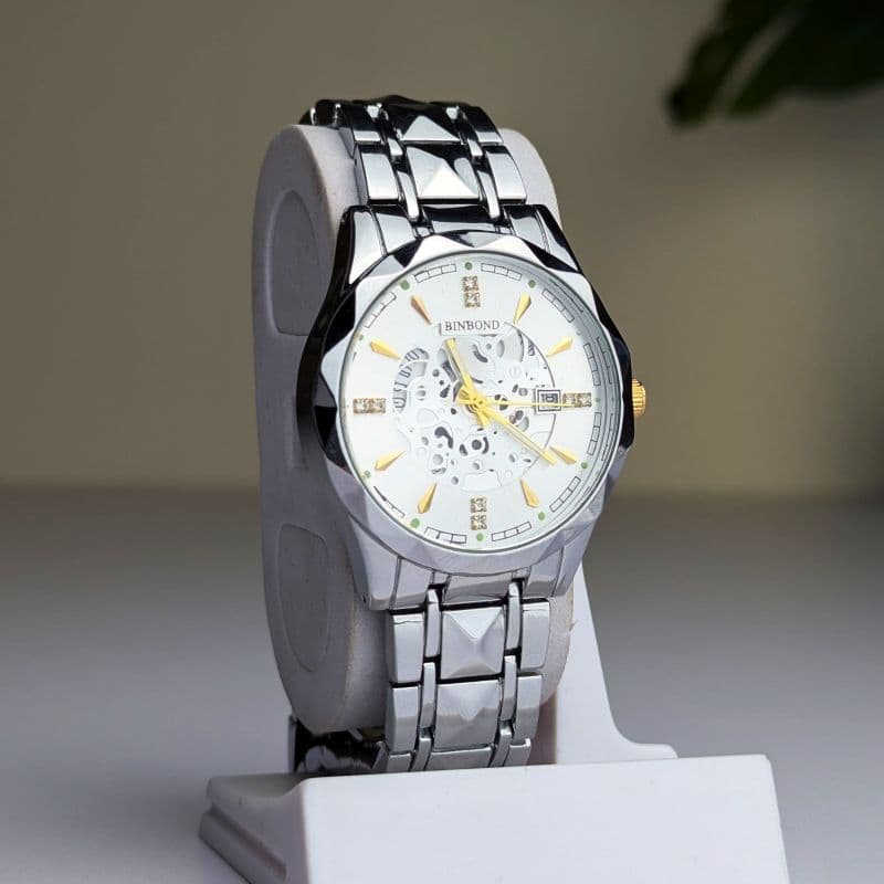 BINBOND Water Resistant Stainless Steel Quartz Watch আভিজাত্য এখন আপনার হাতে! বৈশিষ্ট্য:কোয়ার্টজ বা স্বয়ংক্রিয় সেল্ফ-ওয়াইন্ডিং মেকানিক্যাল।জল-প্রতিরোধক (Water Resistance) 3ATM পর্যন্ত, অর্থাৎ দৈনন্দিন জলের ছিটা বা সংক্ষেপে জলে ডোবার জন্য উপযুক্ত, তবে সাঁতার বা স্নানের জন্য নয়।কেস স্টেইনলেস স্টিল।ডিসপ্লে, সম্পূর্ণ ক্যালেন্ডার, মাল্টিফাংশন বৈশিষ্ট্য। কেন এই ঘড়িটি কিনবেন?