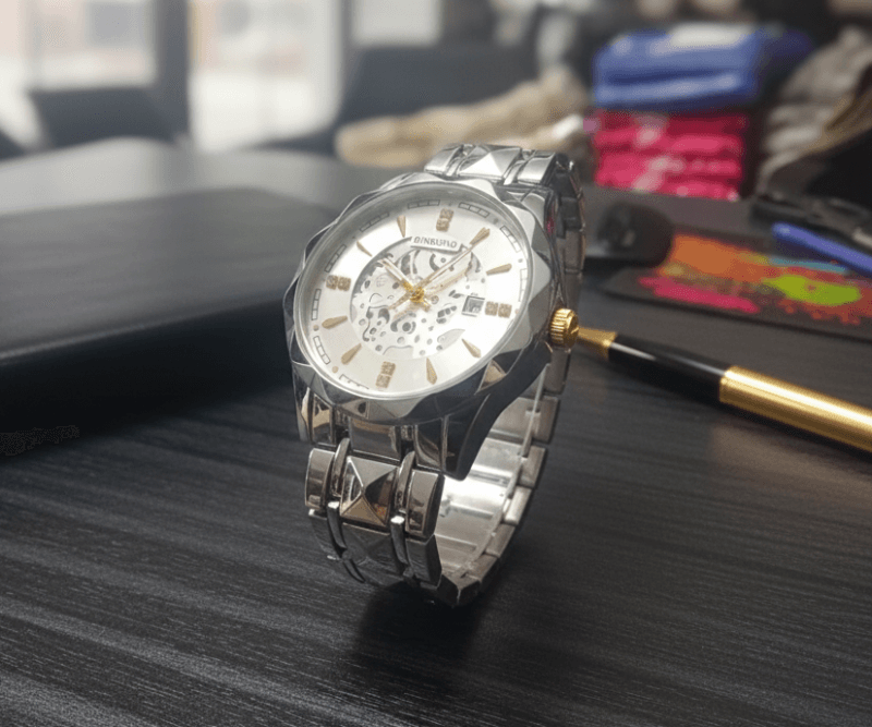 সাশ্রয়ী মূল্যআকর্ষণীয় ডিজাইনস্টেইনলেস স্টিলের ব্যান্ড ও কেস ব্যবহার করা হয়, যা ঘড়িটিকে স্থায়িত্ব দেয়।