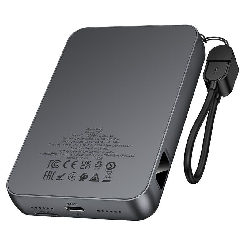 উচ্চ ক্ষমতা সম্পন্ন ব্যাটারি: 10000mAh (38.5Wh) লিথিয়াম পলিমার ব্যাটারি স্মার্টফোন, ট্যাবলেট এবং অন্যান্য ডিভাইস চার্জ করার জন্য নির্ভরযোগ্য কর্মক্ষমতা নিশ্চিত করে।
