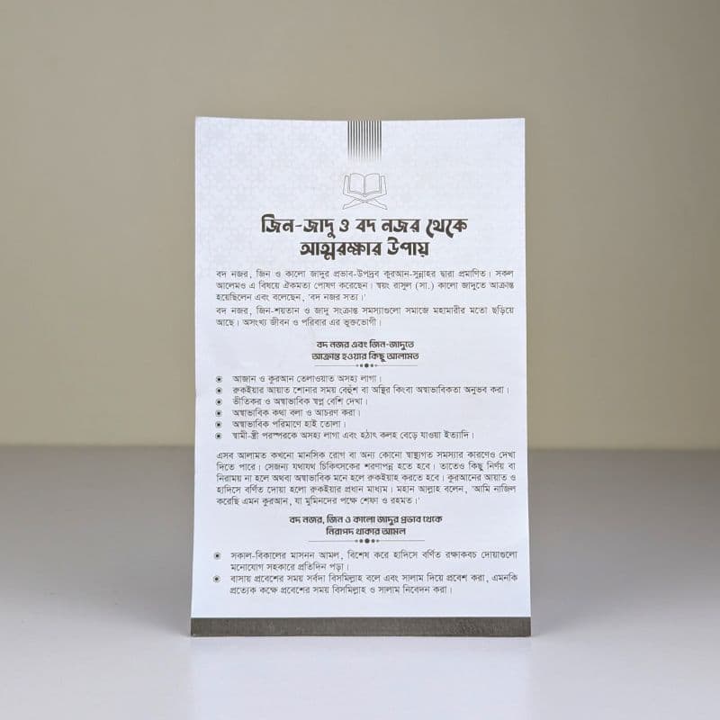ছোট বাচ্চাদের কুরআন শোনার অভ্যাস তৈরি করতে এটি দারুণ কার্যকর।এটি ঘরে চালু রাখলে সারাক্ষণ পবিত্র কুরআনের তিলাওয়াত শোনা যায়, যা বাসায় একটি শান্ত ও বরকতময় পরিবেশ তৈরি করে।যেহেতু এটি ব্যবহার করা খুব সহজ, তাই বয়স্করা কোনো জটিলতা ছাড়াই এটি চালাতে পারবেন।বিয়ে, আকিকা বা যেকোনো ইসলামিক অনুষ্ঠানে এটি একটি চমৎকার এবং অর্থবহ উপহার হতে পারে। ডিভাইসটিতে যা যা থাকছে৬৩ পবিত্র কুরআনের সূরাহ৩ রুকাইয়া লিস্ট২৫ রিজিকের আয়াত৮ জিকির এটি যে ভাবে ব্যবহার করবেন?
