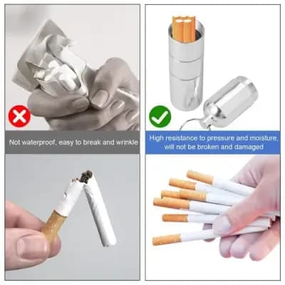 Mini Aluminium Cigarette Case, Key Ring with Cigarette Cases, Waterproof Round Cigarettes for Men, Portable Cigarette Box for Travel, Hiking, Camping Material:Aluminum alloyColor:Silver