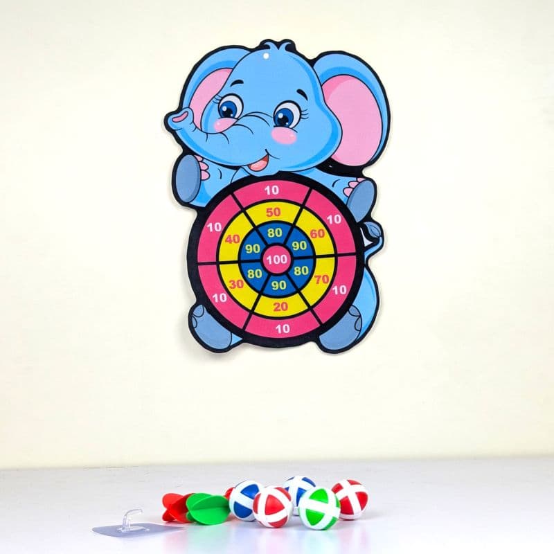খেলো, শেখো, মজা করো! কেন বাচ্চারা (এবং অভিভাবকরা!) এটি পছন্দ করবে:নিরাপদ ইনডোর মজা: সুরক্ষার কথা মাথায় রেখে ডিজাইন করা হয়েছে, স্টিকি বলগুলি কোনো ধারালো বস্তুর ভয় ছাড়াই কাপড়ের টার্গেটে নিরাপদে আটকে যায়।দক্ষতা বৃদ্ধি: এটি বাচ্চাদের চোখ-হাতের সমন্বয় (hand-eye coordination), মোটর দক্ষতা এবং স্কোর গণনা করার সময় সংখ্যা চেনা (number recognition) শেখার জন্য খুবই চমৎকার।উজ্জ্বল এবং আকর্ষণীয় ডিজাইন: কিউট হাতির চরিত্র এবং প্রাণবন্ত, হাই-কন্ট্রাস্ট টার্গেট জোনগুলি (১০ থেকে ৯০ পয়েন্ট পর্যন্ত) বাচ্চাদের দীর্ঘ সময় ধরে ব্যস্ত রাখে।সহজে সেটআপ: টার্গেট বোর্ডটিতে একটি লুপ রয়েছে যা দ্রুত যেকোনো দেয়ালে বা দরজায় ঝুলানো যায়। পণ্য পরিচিতিআপনার বাড়িতে নিরাপদ এবং মজাদার টার্গেট প্র্যাকটিস শুরু করার জন্য নিয়ে এলাম আরাধ্য হাতির স্টিকি বল ডার্টবোর্ড! এই মন মুগ্ধকর গেমটিতে একটি হাসিখুশি নীল হাতি একটি বড়, রঙিন টার্গেট ধরে আছে, যা বাচ্চাদের কাছে এটিকে মুহূর্তের মধ্যে প্রিয় করে তুলবে।ধারালো ডার্টকে বিদায় জানান! এই সেটটি হালকা, স্টিকি বল এবং ছোট প্লাস্টিকের প্যাডল ব্যবহার করে, যা নিশ্চিত করে যে গেমটি ছোট বাচ্চাদের জন্য এবং ইনডোর খেলার জন্য সম্পূর্ণ নিরাপদ।