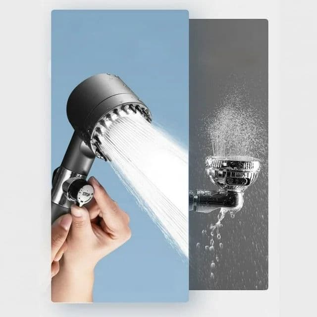 Turbocharged Shower Head প্রধান বৈশিষ্ট্য এবং উপকারিতাগুলোঃএর ভেতরে একটি ছোট ফ্যান বা টার্বাইন থাকে। যখন পানি এর ভেতর দিয়ে যায়, তখন ফ্যানটি দ্রুত ঘোরে এবং পানির গতি বা প্রেসার অনেক গুণ বাড়িয়ে দেয়। শাওয়ারটির হ্যান্ডেলের ভেতরে সাদা রঙের একটি PP কটন ফিল্টার থাকে। এটি পানি থেকে আয়রন (লোহা), ময়লা এবং বালু দূর করতে সাহায্য করে, যা আপনার চুল এবং ত্বকের জন্য অনেক ভালো।রাবারের তৈরি নরম কাঁটা আছে ,গোসলের সময় এটি দিয়ে মাথায় বা শরীরে ম্যাসাজ করা যায়, যা রক্ত সঞ্চালন বাড়াতে এবং আরাম পেতে সাহায্য করে।এই শাওয়ারগুলো সাধারণ শাওয়ারের তুলনায় প্রায় ৩০-৪০% পানি সাশ্রয় করতে পারে। এর হাতলে একটি Stop Button থাকে, যা দিয়ে কল না ঘুরিয়েই এক চাপে পানি আসা বন্ধ বা চালু করা যায়।