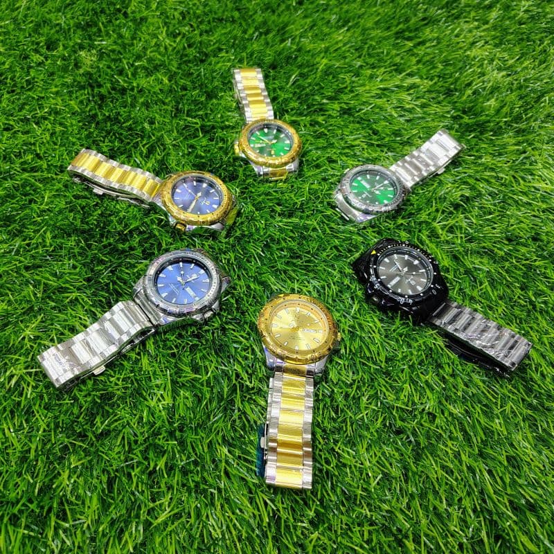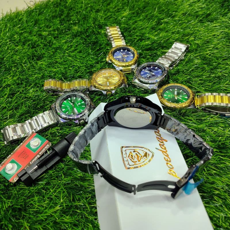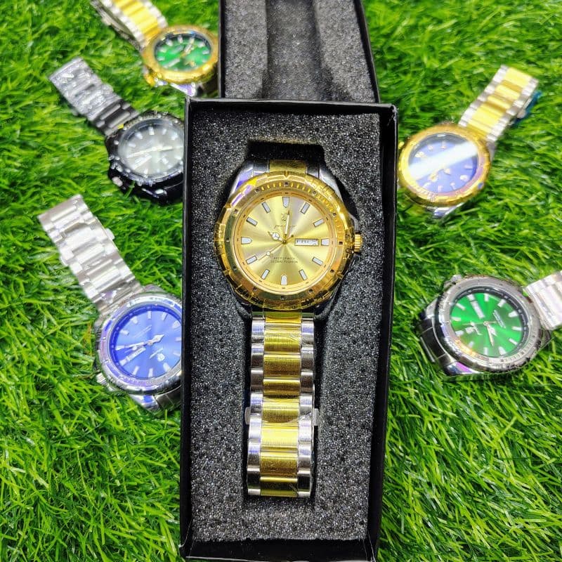 Gender: MenWatch Colour: Gold Green, Two Tone Gold, Silver Green, Silver BlueColour Quality: High Quality Electroplating Colour