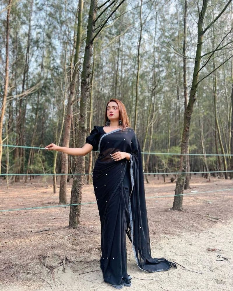 "জরর্জেট স্টোন শাড়ি: সৌন্দর্যের ছোঁয়ায় রাজকীয় আভা"