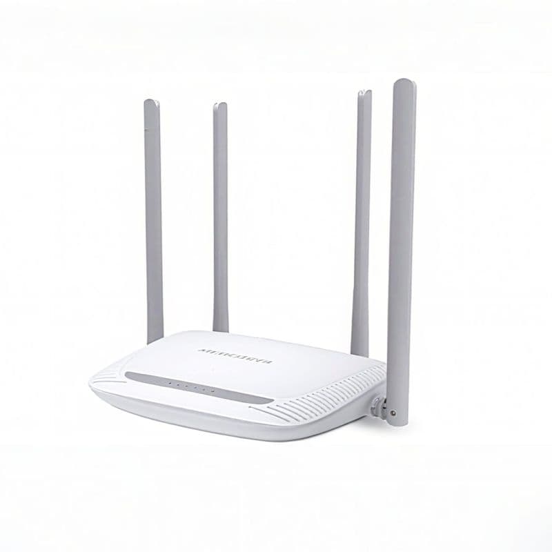 Mercusys MW325R 300Mbps ৪ অ্যান্টেনার ওয়্যারলেস রাউটার (কালো রঙ)1️⃣ বিস্তৃত কভারেজ – চারটি শক্তিশালী ৫dBi অ্যান্টেনা সর্বোচ্চ ৫০০m² পর্যন্ত ওয়্যারলেস কভারেজ প্রদান করে।2️⃣ বর্ধিত সংকেত শক্তি – হাই গেইন অ্যান্টেনাগুলো সিগনালের শক্তি, ব্যাপ্তি এবং স্থিতিশীলতা অনেক গুণ বাড়িয়ে তোলে।3️⃣ ৩০০Mbps ওয়্যারলেস গতি – HD স্ট্রিমিং, অনলাইন গেমিং এবং বড় ফাইল ডাউনলোডের জন্য উপযুক্ত।4️⃣ সহজ ইনস্টলেশন – ইন্টারফেসসমৃদ্ধ ওয়েবপেজের মাধ্যমে মাত্র কয়েক মিনিটেই রাউটার সেটআপ করা যায়।5️⃣ কভারেজ রেঞ্জ সংক্রান্ত তথ্য পরীক্ষামূলক ফলাফলের উপর ভিত্তি করে দেওয়া হয়েছে। বাস্তব পারফরম্যান্স অ্যাপ্লিকেশন ও পরিবেশগত অবস্থার উপর নির্ভর করে পরিবর্তিত হতে পারে।1. Model: Mercusys MW325R2 . Interface: 1WAN and 4 LAN3 . Frequency: 2.4 – 2.4835GHz4 . DIM: 167 x 118 x 33 mm
