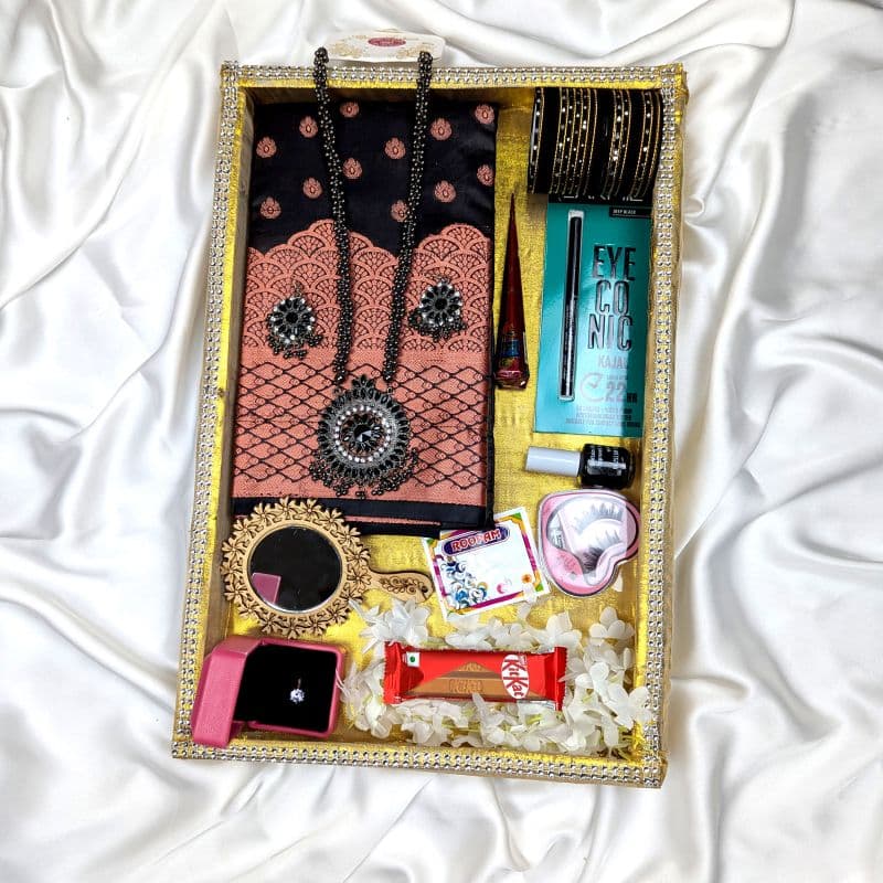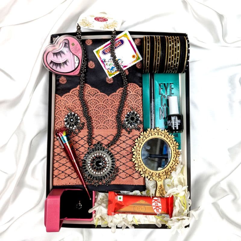 Premium Silk Katan Saree Combo Pack – Black ✨ ভালোবাসা শব্দে নয়, প্রকাশ পাক উপহারে ✨ প্রিয়জনের মুখে হাসি ফোটানোর জন্য আসুক একটি ভিন্ন আয়োজন।বিশেষ মুহূর্তে বিশেষ মানুষকে দিন প্রিমিয়াম সিল্ক কাতান শাড়ির কম্বো সেটযেখানে প্রতিটি আইটেম বেছে নেওয়া হয়েছে যত্ন আর ভালোবাসার ছোঁয়ায়। মোট 15 +আইটেমের কম্বো সেটে থাকছে প্রিমিয়াম সিল্ক কাতান শাড়ি ম্যাচিং গলার হার, কানের দুল ও চুড়ি ম্যাচিং নেইল পলিশ, ও চাঁদ টিপ ফিঙ্গার রিং উইথ বক্স , উডেন আয়না, কাজল ও মেহেদি ️ আইল্যাশ, গাজরা কিটক্যাট চকলেট জন্মদিন, এনিভার্সারি কিংবা যেকোনো বিশেষ দিনে প্রিয়জনের জন্য সারপ্রাইস হিসেবেএই এক সেটেই থাকুক আপনার সাধ্যের মধ্যে সবটুকু। এখনই অর্ডার করুন, আর প্রিয়জনকে দিন হাসি আর ভালোবাসায় ভরা এক অনন্য উপহার
