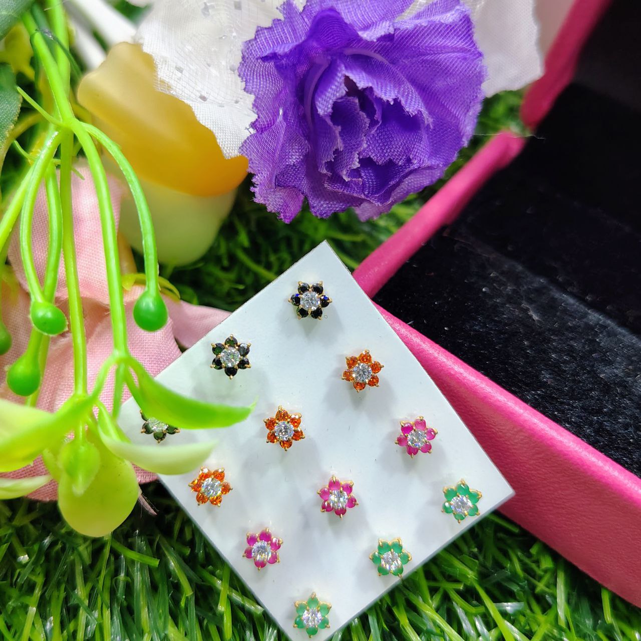 Traditional Gold Seven Stone Mossanite Nose Pin -7 Mm (With gift box)